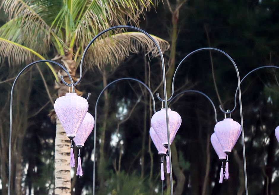 ソル・アンバンの挙式は、リゾートの目の前にひっそりと広がる隠れ家ビーチで執り行われるウェディングスタイルです。ソル・アンバンの宿泊棟から直接、木漏れ日の差し込む保護林を抜けると、ベトナムの原風景を留める隠れ家ビーチにホイアン・スタイルのランタンとモダンでシックな装飾を施した挙式会場が広がります。
